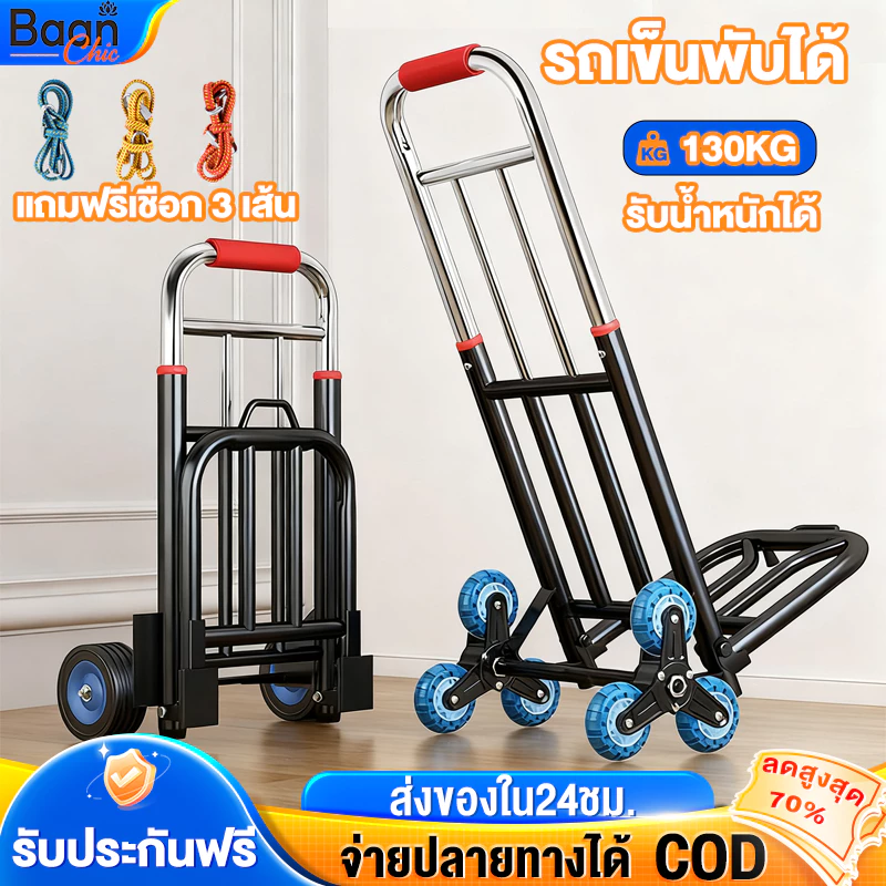 10. รถเข็น รถเข็นของ รถเข็นพับได้ 2ล้อ/3ล้อ ท่อหนาพิเศษ พกพาสะดวก ยืดหดได้ ล้อ PU รับน้ำหนักได้ 130kg