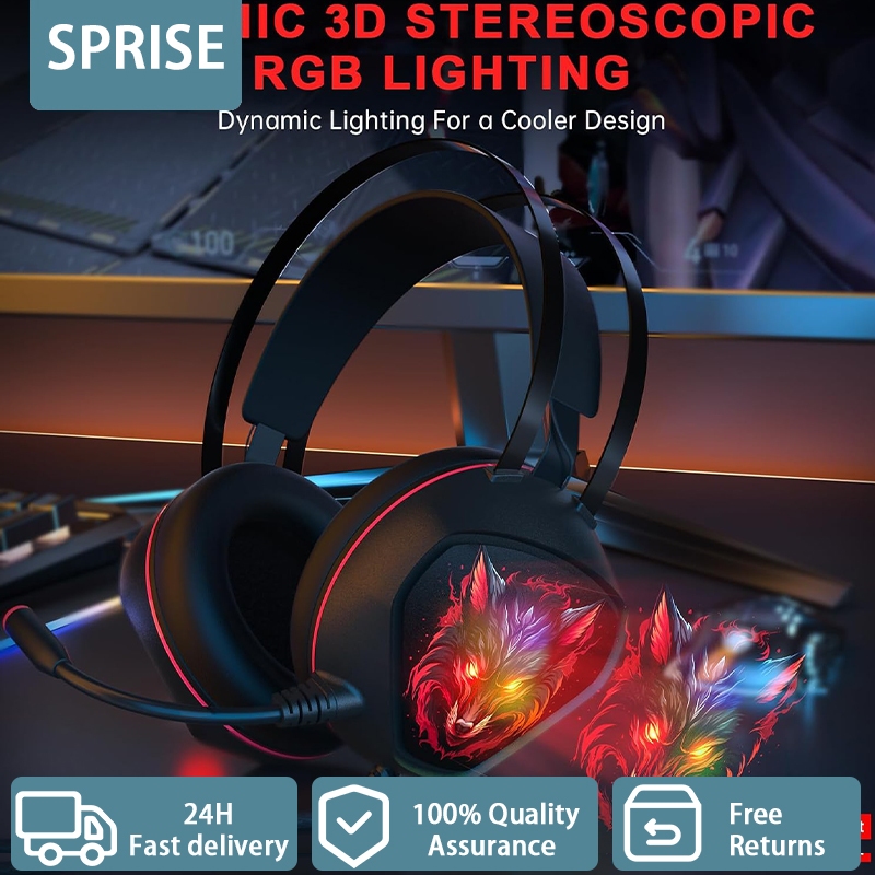 4. Sprise CM7000 Gaming Stereo Headphone หูฟังครอบหูแบบมีสายพร้อมไมโครโฟนตัดเสียงรบกวน, ไฟ RGB แบบไดนามิก, เบสเซอร์ราวด์สําหรับโทรศัพท์, แล็ปท็อป, PC, PS4/5, สวิตช์
