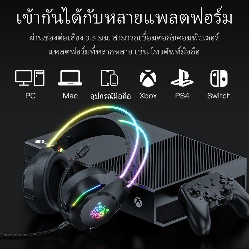 10. ONIKUMA X26 หูฟังเกมมิ่ง Gaming Headset RGB Lighting หูถอดได้ AUX 3.5+USB port รับประกัน 2 ปี