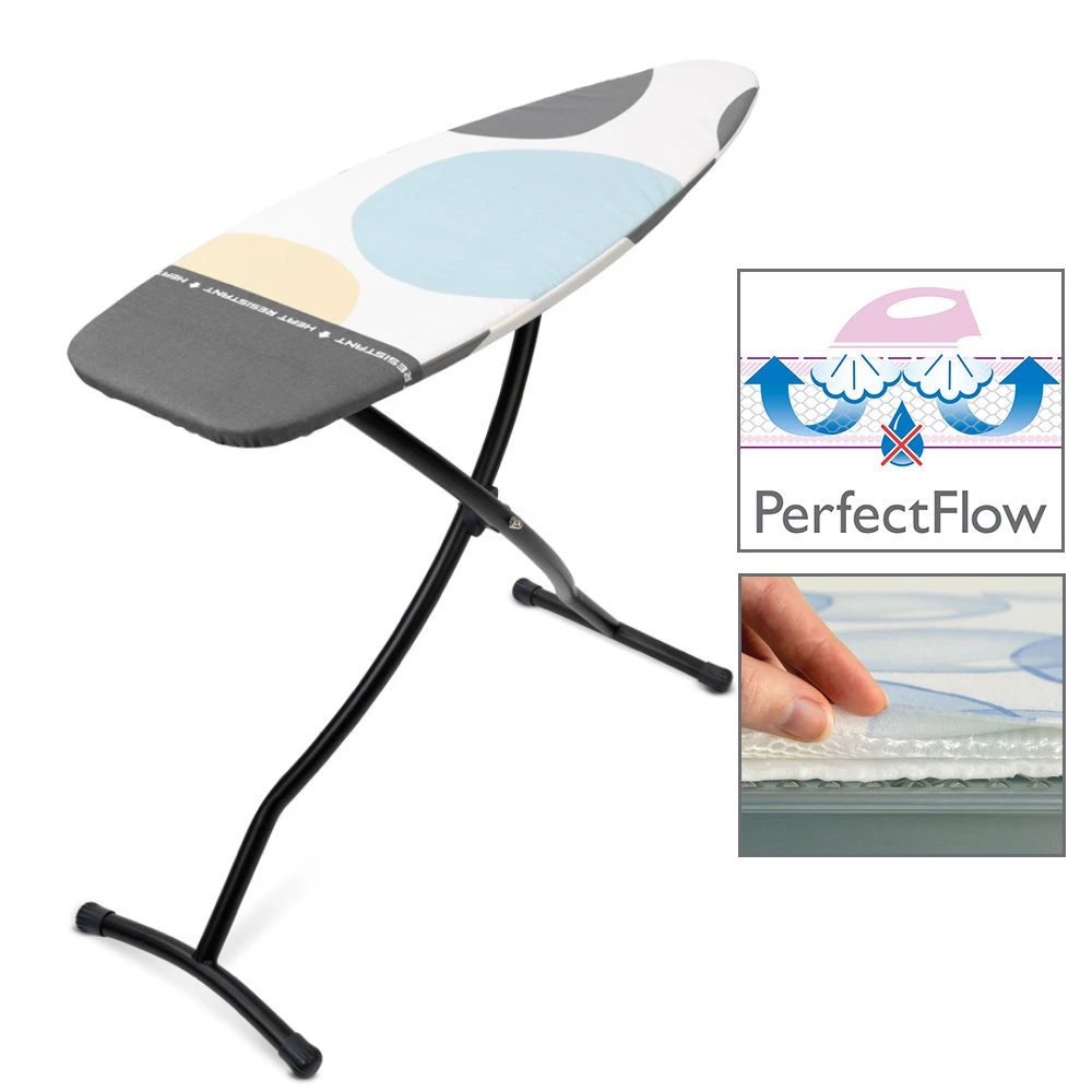 3. Brabantia โต๊ะรีดผ้าแบบยืนรีด Ironing Board B, 124×38 cm, Solid Steam Iron Rest, PerfectFlow – Spring Bubbles