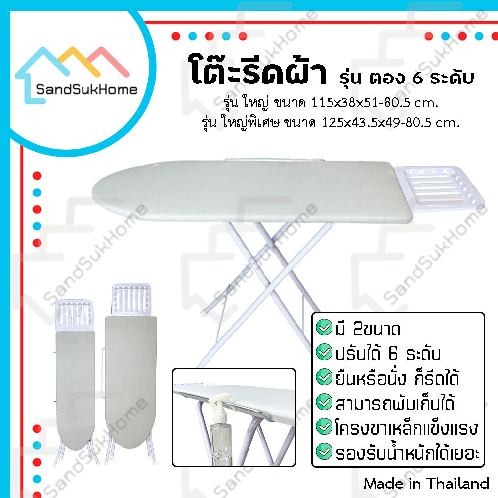 6. SandSukHome โต๊ะรีดผ้า รุ่น ตอง 6ระดับ (สีพื้นเทา) สามารถปรับได้ 6 ระดับ พับเก็บสะดวก