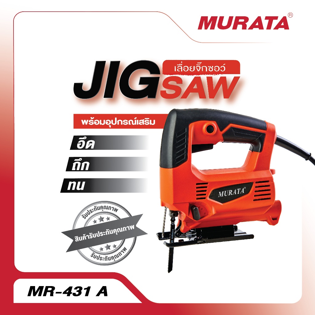 9. Murata เลื่อยฉลุ เลื่อยจิ๊กซอ รุ่น MR-431-A ช่วงชัก 6.5 มิล ความเร็วรอบ 3,100 รอบ/นาที กำลังไฟ 450 วัตต์
