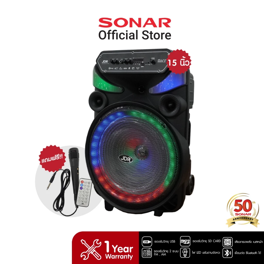 4. JDR ลำโพงบูลทูธ 15 นิ้วล้อลาก รุ่น JR-1539 มีแบตในตัว เครื่องเสียง เบสหนัก แถมไมค์และรีโมท