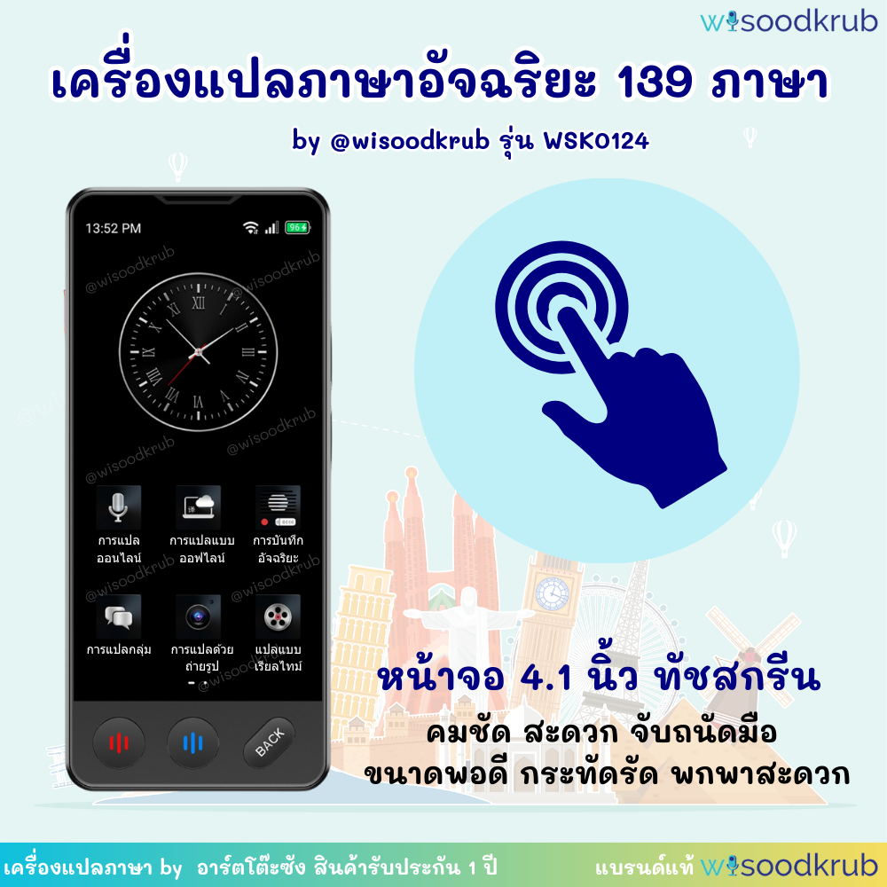 6. เครื่องแปลภาษา by wisoodkrub รุ่นล่าสุด WSK0124 รองรับ 3 ระบบ ใส่ซิม 4G ได้ รองรับการแปลภาษาแบบออนไลน์ 139 ภาษา การแปลแบ