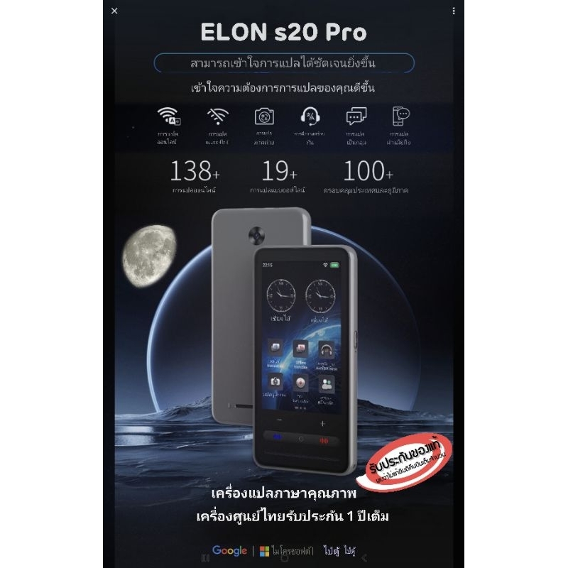 10. เครื่องแปลภาษาคุณภาพสูง ELON s20 Pro มีฟังก์ชันอัจฉริยะหลากหลาย ทันสมัยที่สุด NEW 2025 เครื่องศูนย์ไทยรับประกัน 1 ปีเต็ม