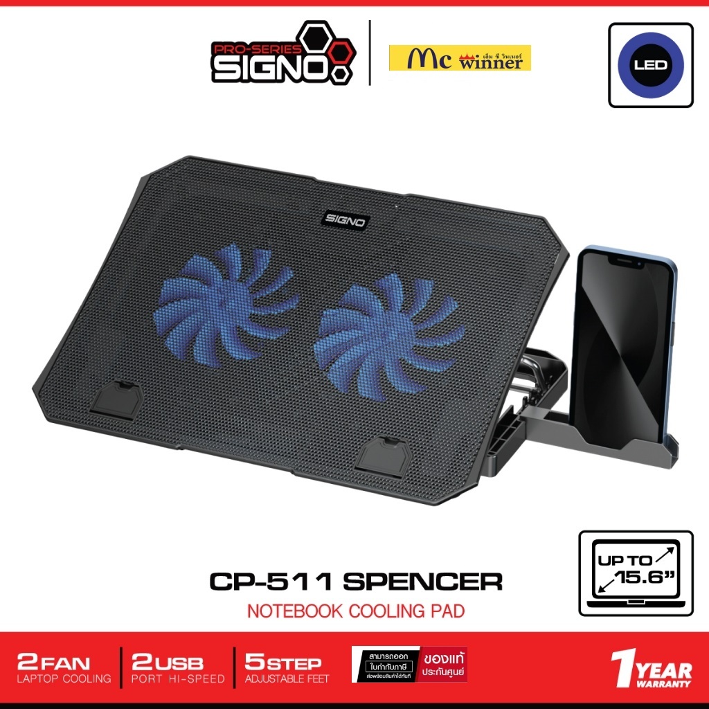 9. COOLING PAD (อุปกรณ์ระบายความร้อนโน้ตบุ๊ค) SIGNO CP-511 SPENCER- ของแท้รับประกัน 1 ปี