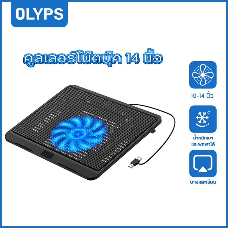 7. OLYPS Notebook Cooling Pad ที่วางโน้ตบุ้ค 14 นิ้ว พัดลมระบายความร้อน สียงเงียบ พอร์ต USB พัดลมโน๊ตบุ๊ค laptop cooler