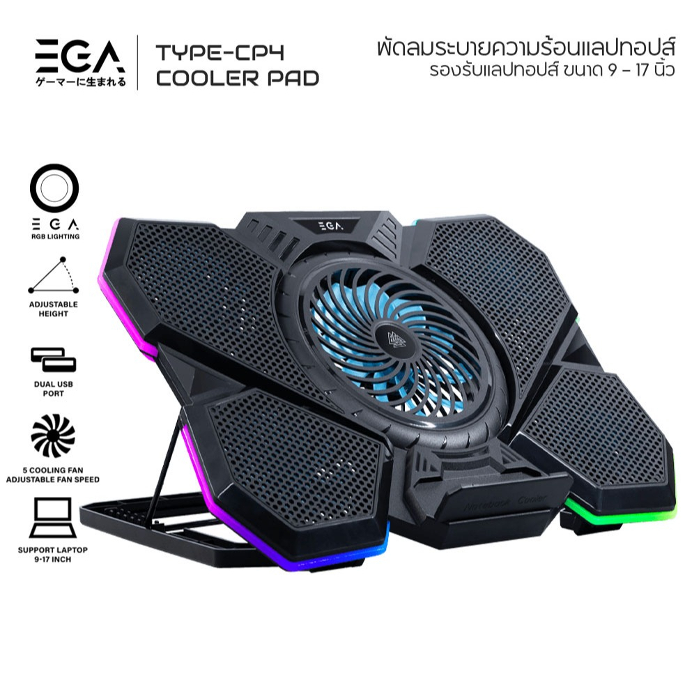 1. EGA CP4 ที่วางโน๊ตบุ๊ค รุ่น TYPE CP4 พัดลลม 5 Cooling Fan For Notebook ตัวปรับระดับได้ ขนาด 9-17 นิ้ว