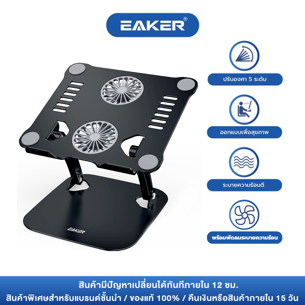8. EAKER แท่นวางโน๊ตบุ๊คพร้อมพัดลมในตัว ระบายความร้อน ขาตั้งแล็ปท็อป ปรับระดับได้ NotebookStand BC06