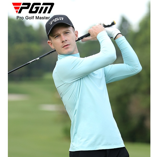 9. Pgm Golf ผ้าไหมน้ําแข็ง cool ผ้ายืดระบายอากาศป้องกันรังสียูวีผู้ชายแขนยาวกีฬา bottoming t เสื้อ