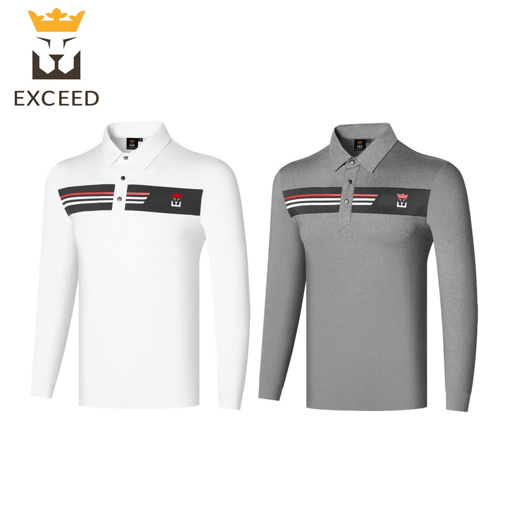 2. เสื้อกอล์ฟ แขนยาว ผู้ชาย EXCEED (EC-YFM004) สีเทา สีขาว