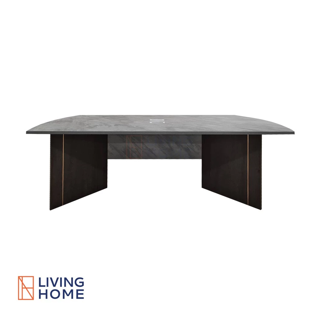 2. Hom heart โต๊ะประชุมสไตล์โมเดิร์น ไม้โอ๊คสีเทา+ขอบไม้สีดำ
