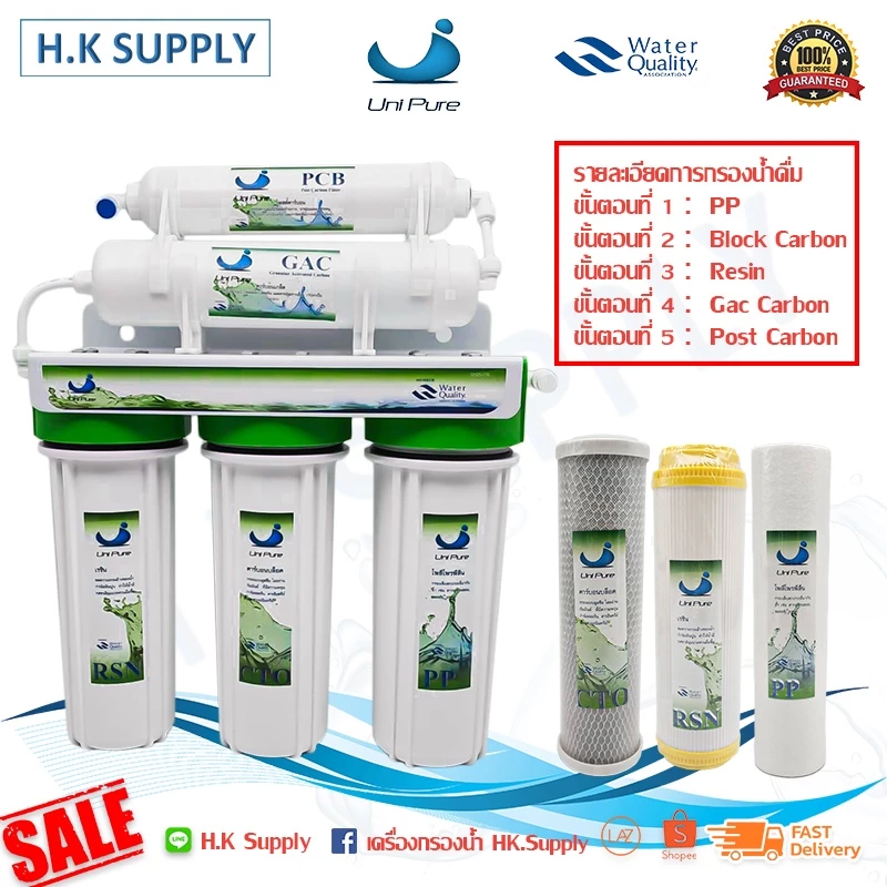 - Unipure เครื่องกรองน้ำ 5 ขั้นตอน ระบบ RO 100 GPD แถมฟรี ถังเก็บน้ำแรงดัน