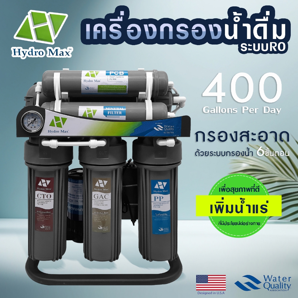 - HydroMax เครื่องกรองน้ำ น้ำแร่ 5 6 ขั้นตอน ระบบ RO เพิ่มแร่ธาตุ 75 100 150 200 300 400 GPD