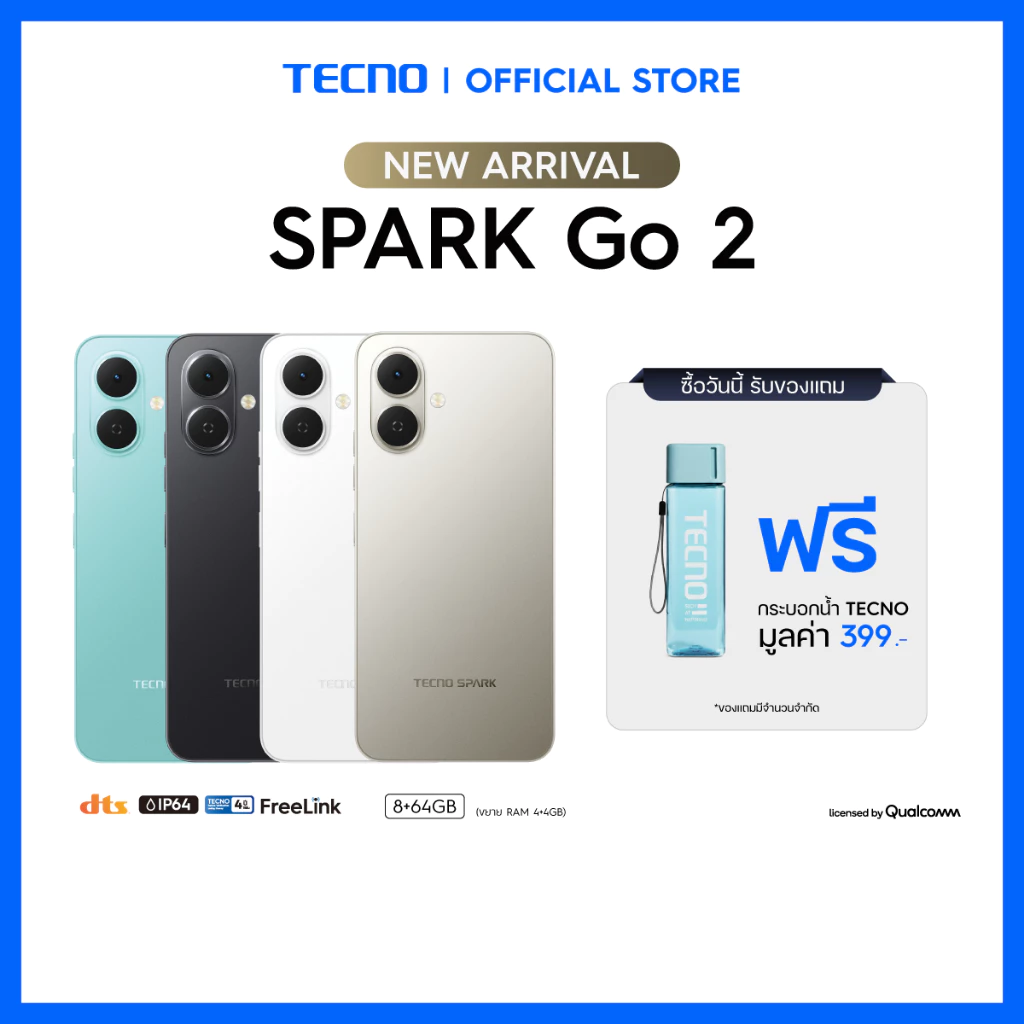 - กล้อง 64MP + 2MP + 8MP