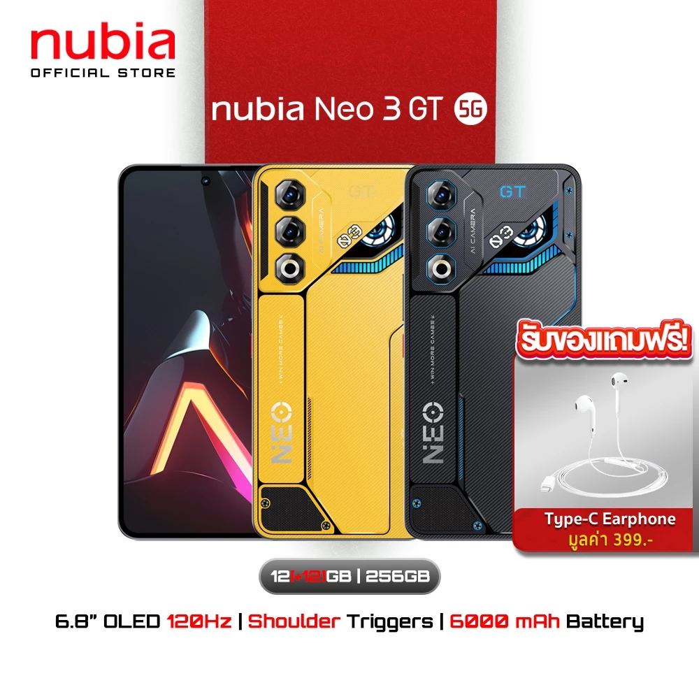 6. Nubia Neo 2 5G 8+256GB (เพิ่มแรมสูงสุด20GB) - ฟรี!เซตคู่nubia Gift Box l ปุ่มL/R Shoulder Trigger แบตเตอรี่6000mAh