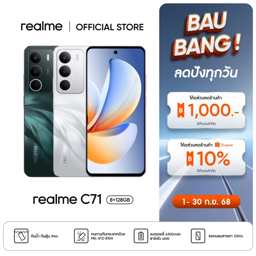 - หน้าจอ: ขนาด 6.78'' FHD+ อัตรารีเฟรชหน้าจอ 120Hz ความสว่างสูงสุด 580nit