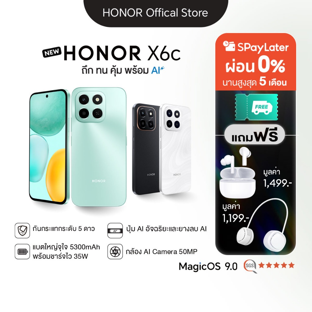 9. HONOR X6C สมาร์ทโฟน หน้าจอใหญ่ 6.61 นิ้ว / แบตเตอรี่อึด 5300mAh / ชาร์จเร็ว 35W / RAM 6GB / ความจุ 128GB-256GB / กันฝุ่น