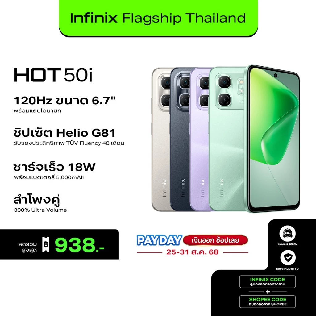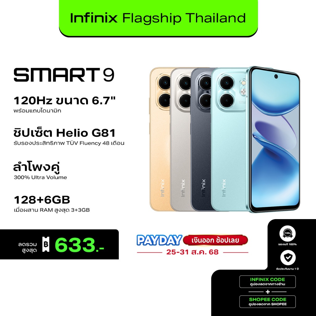 8. Infinix SMART 9 128+3GB (เพิ่มแรมสูงสุด 6GB) I 120Hz หน้าจอใหญ่ 6.7" Punch-Hole I ชิปเซ็ต Helio G81 I ลำโพงคู่ 300%