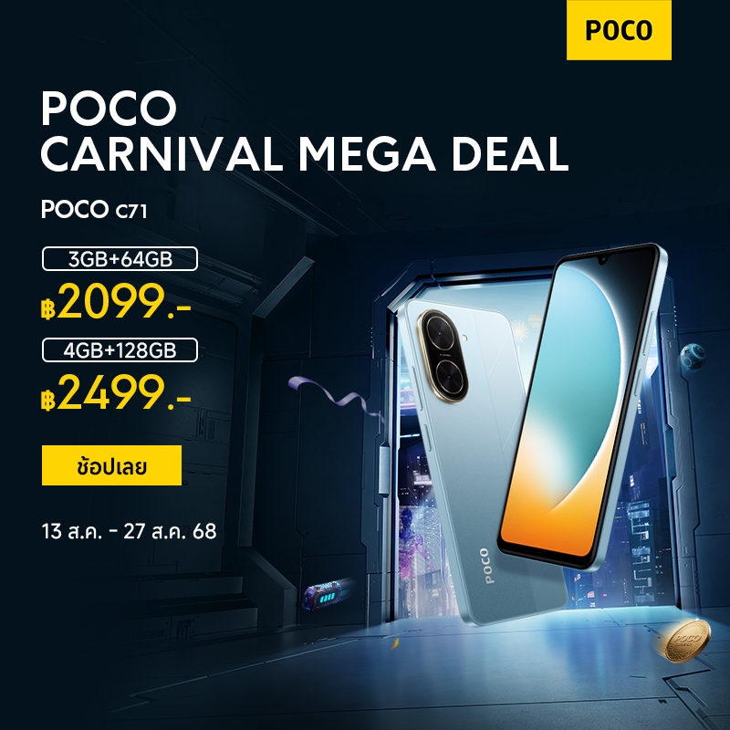 1. [NEW]POCO C71 3+64/4+128 โปรเซสเซอร์ Octa-Core ทรงพลัง|หน้าจอ 6.88" สุดสมจริง|กล้องคู่ AI คมชัด 32MP