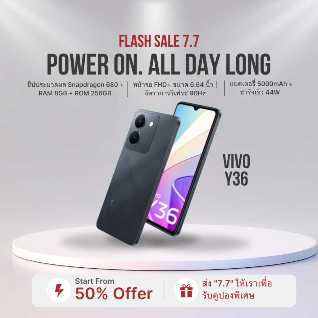 4. Vivo Y36 จอใหญ่ 6.64 นิ้ว RAM 8GB ROM 256GB แบตอึด ใช้งานลื่น กล้องชัด ถ่ายรูปสวยทุกมุม