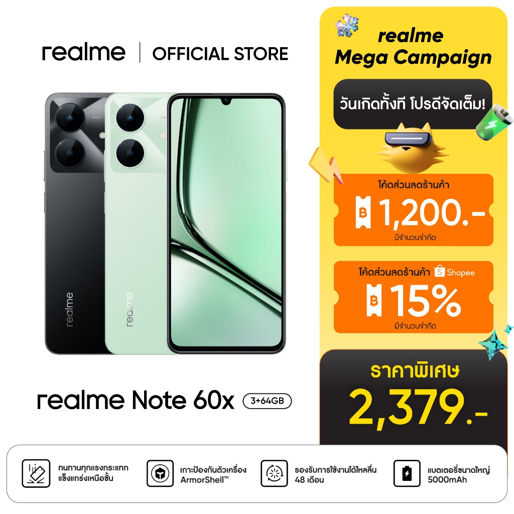 5. realme Note 60x (3+64) | สมาร์ทโฟนทนการกระแทก ใช้งานราบลื่น 48 เดือน แบตเตอรี่ 5000 mAh