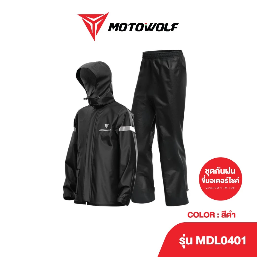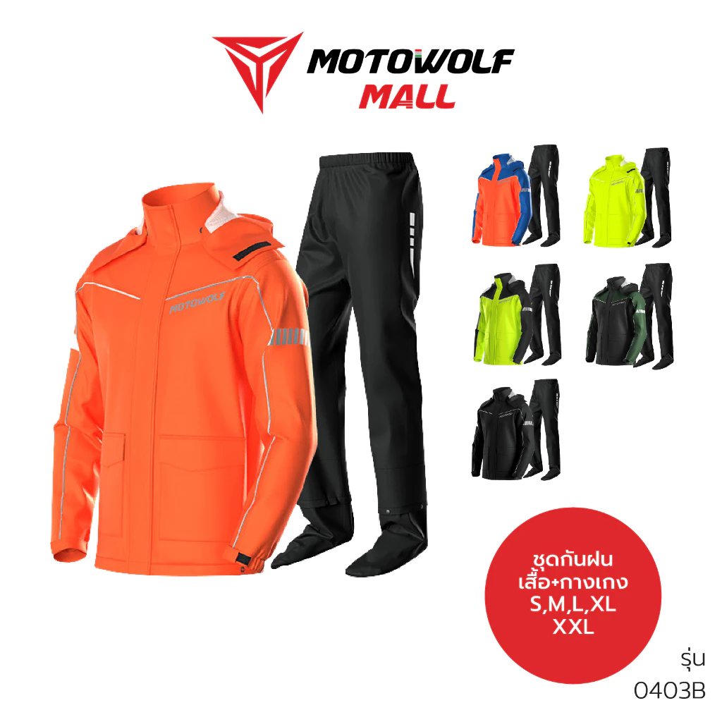 1. [โค้ดลด MTWDEC100 ลด100] MOTOWOLF ชุดกันฝน รุ่น 0403B เสื้อและกางเกงกันฝน เสื้อกันฝนมีฮู๊ด