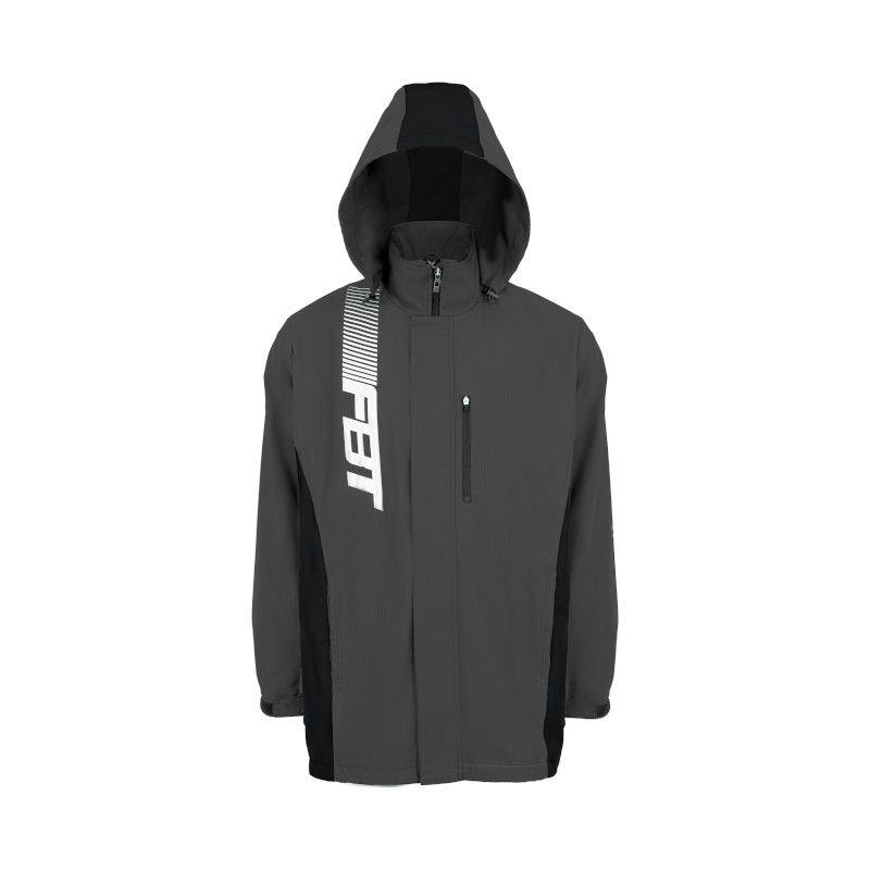 - มาพร้อมฮู๊ดพับเก็บได้ที่คอ