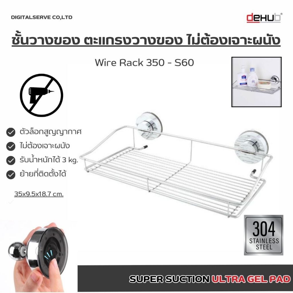 7. Dehub Wire Rack 350- S60 ชั้นวาง ติดผนัง ไม่ต้องเจาะผนังให้เป็นรู สแตนเลส ตัวแขวน ชั้นวางอเนกประสงค์