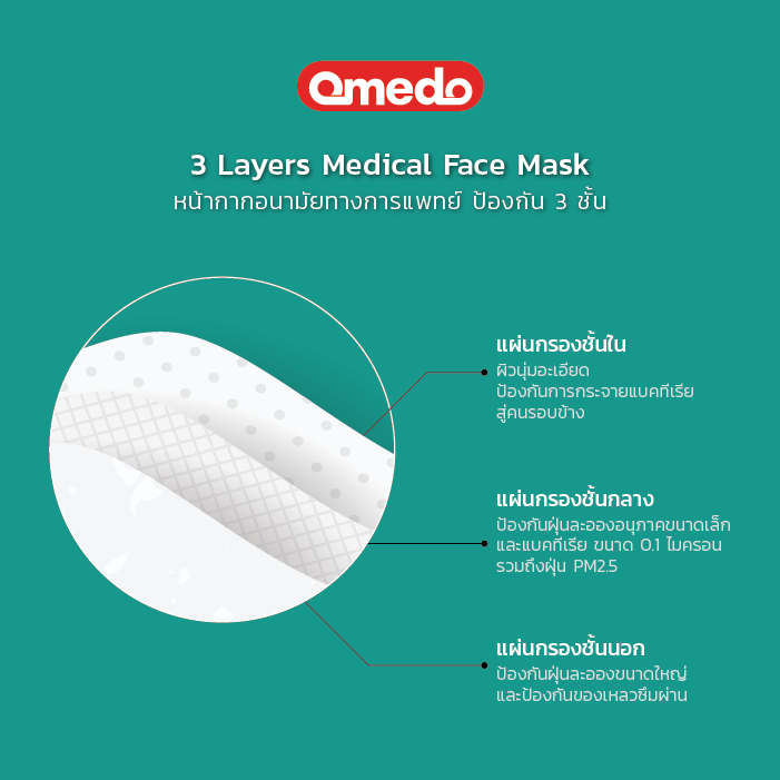 8. [Official Store] Omedo 3D Medical Face Mask มอก.ระดับที่ 2 รูปทรง 3D หนา 3 ชั้น บรรจุ 50 ชิ้น