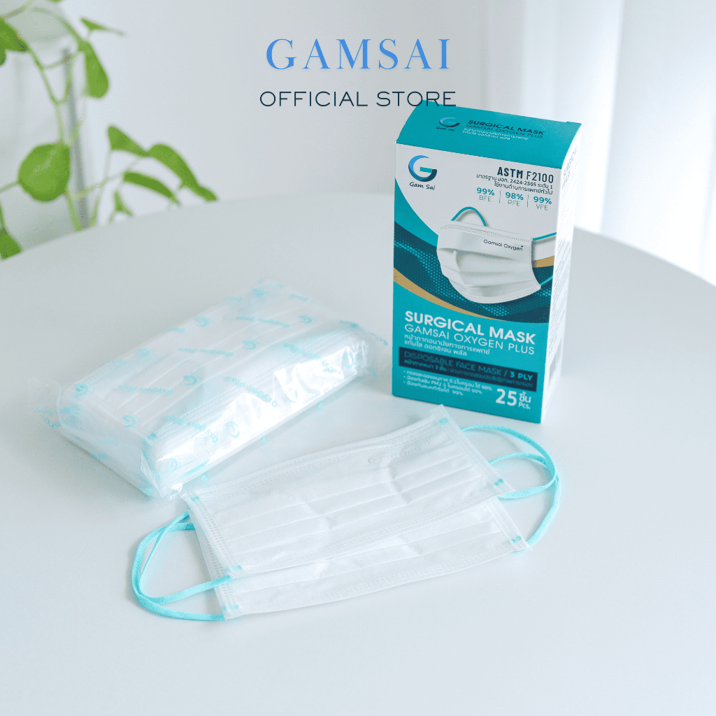 6. GAMSAI OXYGEN PLUS_L1 **แพค4กล่อง/1ลัง** หน้ากากอนามัยทางการแพทย์หน้ากากป้องกันป้องกันฝุ่นPM2.5 ไวรัสและแบคทีเรียหนา3ชั้