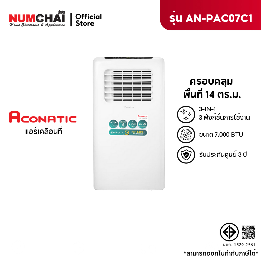 6. Aconatic แอร์เคลื่อนที่ ขนาด 7000 BTU Portable Air Conditioner รุ่น AN-PAC07C1 (รับประกันคอมเพรสเซอร์ 3 ปี)