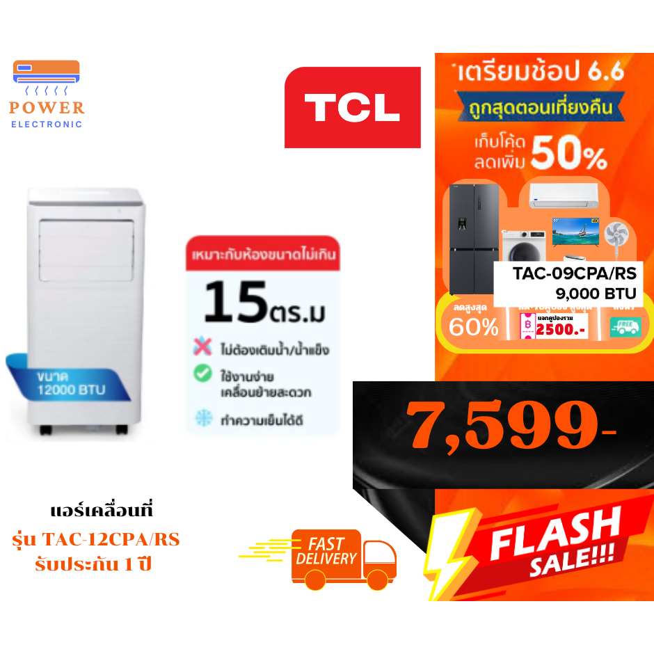 5. TCL แอร์เคลื่อนที่ ขนาด 12000 BTU รุ่น TAC-12CPA/RPV ระบบสัมผัส หน้าจอแสดงผล LED เย็นเร็ว รับประกัน 1 ปี (พร้อมส่ง)