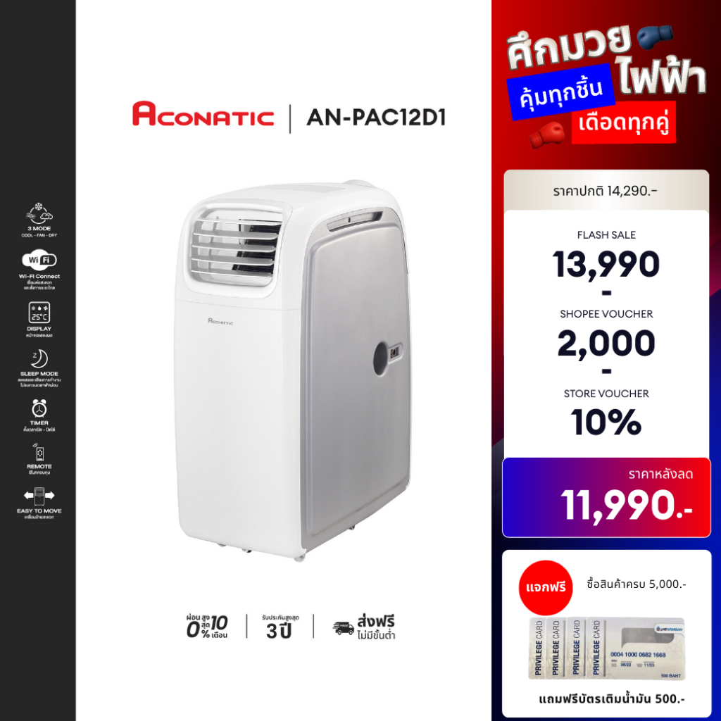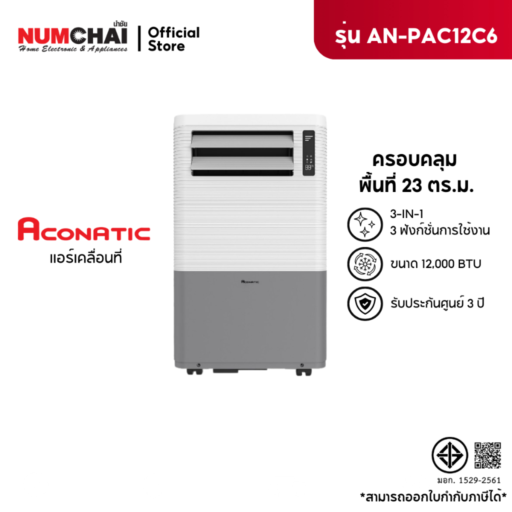 - Aconatic แอร์เคลื่อนที่ 12000 BTU Portable Air Conditioner รุ่น AN-PAC12C6