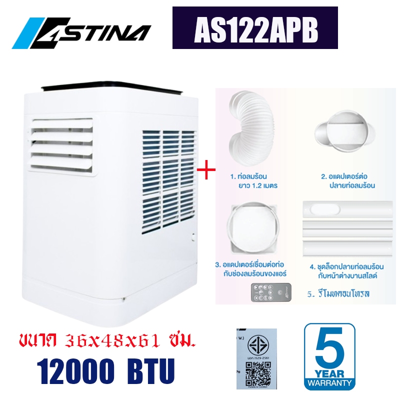 1. ASTINAแอร์เคลื่อนที่แอร์เต็นท์AS122APB 12000BTUพื้นที่ใช้งาน16-20ตร.ม.เสียงเงียบเย็นเร็วรับประกัน5ปี