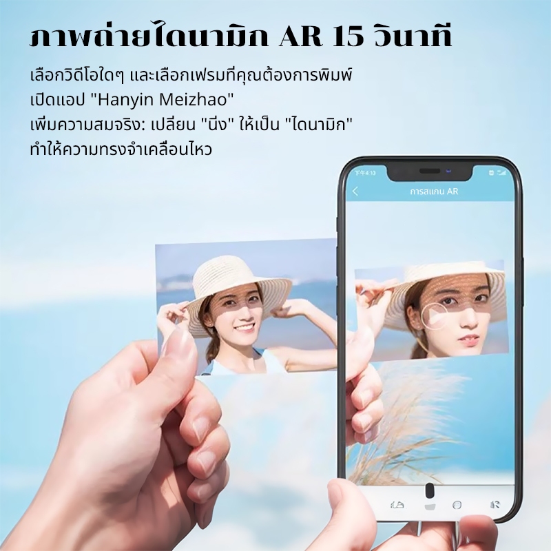 9. HPRT Photo Printer เครื่องพิมพ์ภาพถ่าย พกพาได้ เครื่องพิมพ์ AR บลูทูธไร้สาย การพิมพ์ทันที 313*600 DPI เครื่องพิมพ์ภาพความร้อน การพิมพ์แบบไร้หมึก เครื่องพิมพ์ภาพสี