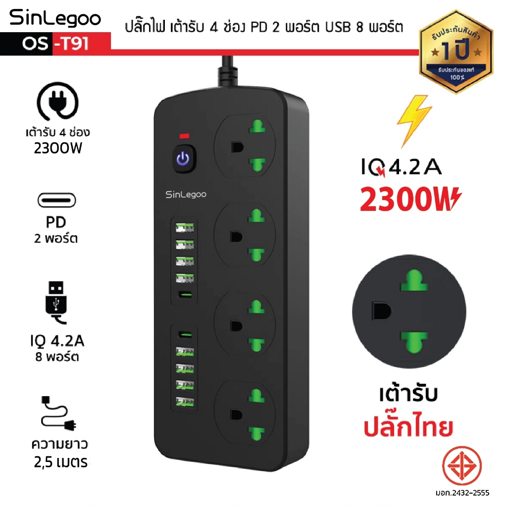 - เต้ารับ 4 ช่อง กำลังไฟ 2300W