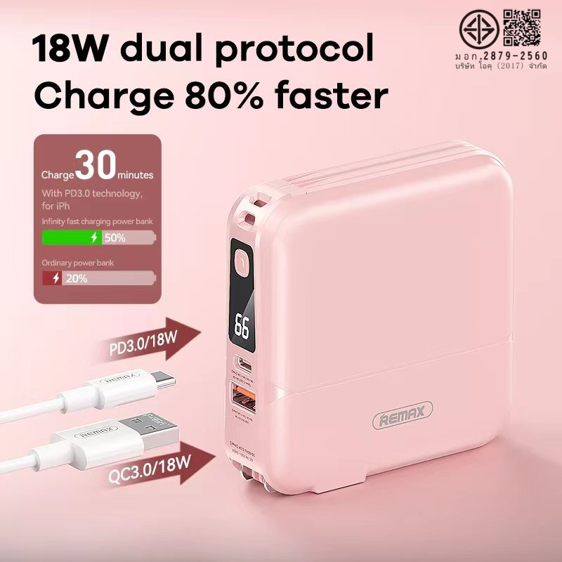 1. มีมอก.Remax พาวเวอร์แบงค์ แบตเตอรี่สำรอง 15000mAh รุ่น Infinity W1501 RPP-20 All in one QC 18W