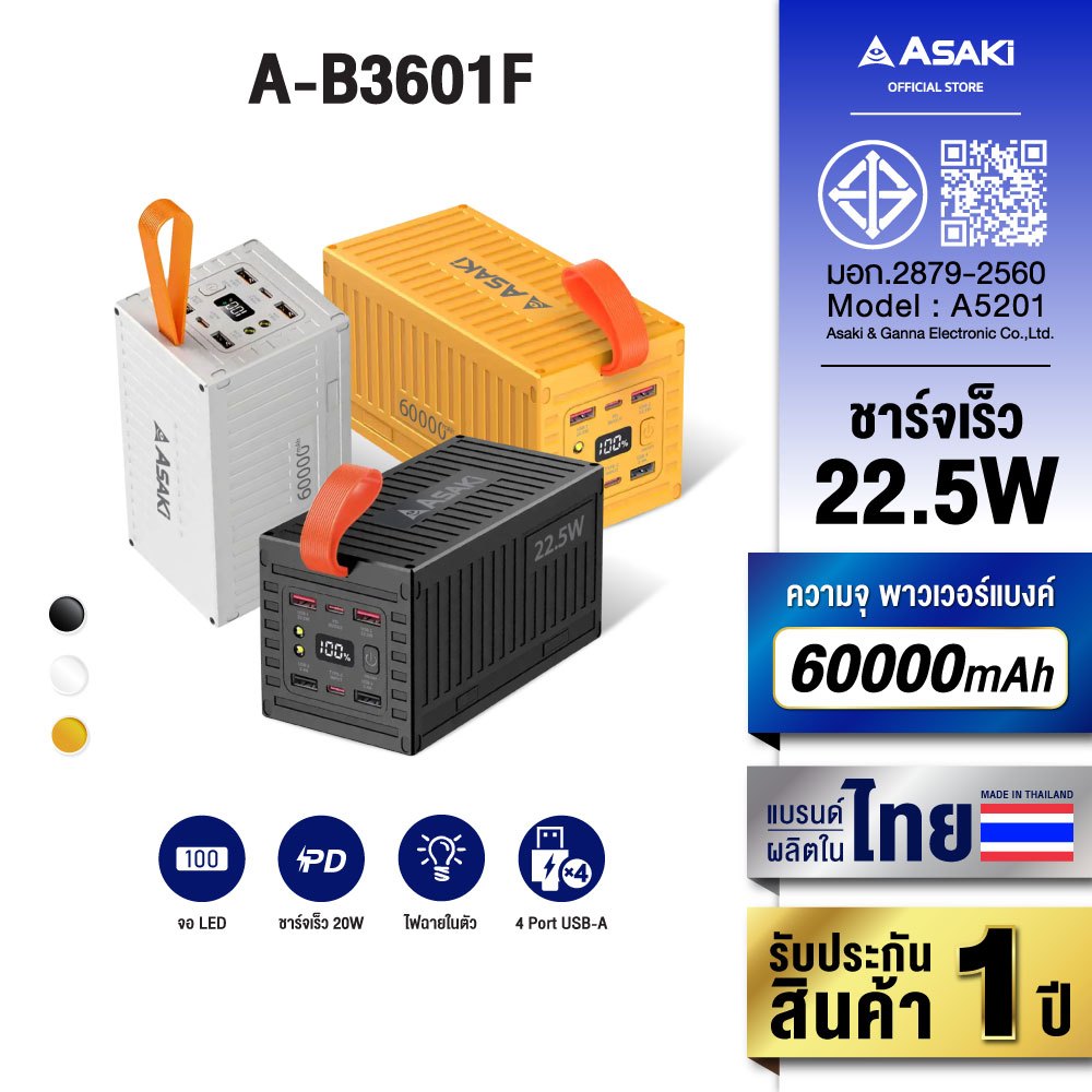 8. Asaki Powerbank 60000 mAh.พาวเวอร์แบงค์ มี มอก.ชาร์จเร็ว 22.5W รุ่น A-B3601F รับประกัน 1 ปี