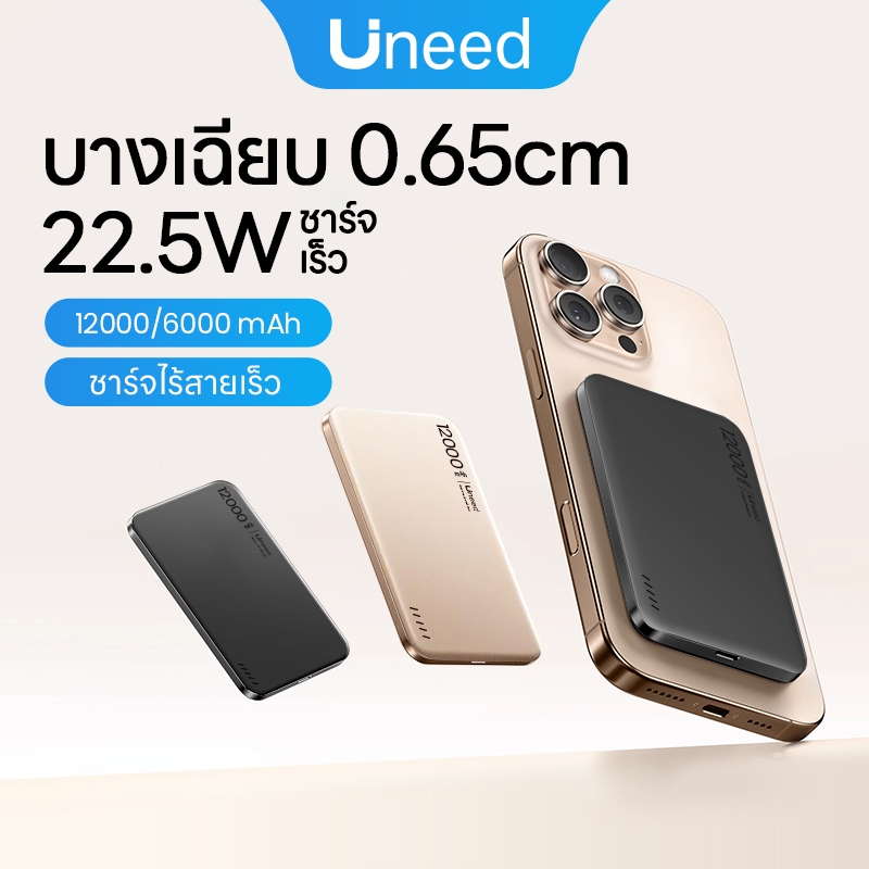 4. [บางพิเศษ 0.65 ซม] UNEED Powerbank เล็กที่สุด แบตสํารอง Magnetic 12000/6000mAh พาวเวอร์แบงไร้สาย