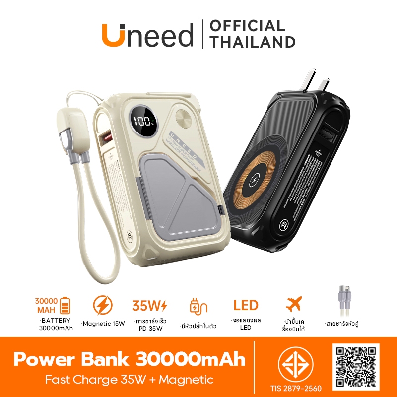 2. [รับประกัน 2 ปี] UNEED Powerbank เล็กที่สุด พาวเวอแบงค์ 20000/30000mAh Magnetic แบตสํารอง ชาร์จเร็ว PD35W พาวเวอร์แบงค์