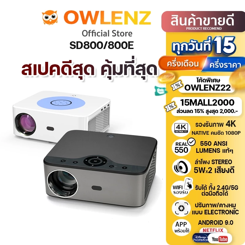 3.โปรเจคเตอร์ OWLENZ SD800 / 800E