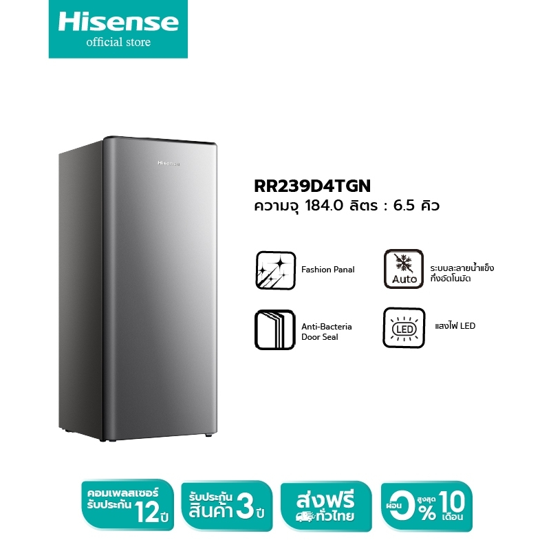 3. Hisense ตู้เย็น 1 ประตู 6.5Q/ 184 ลิตร รุ่น RR229D4AD1