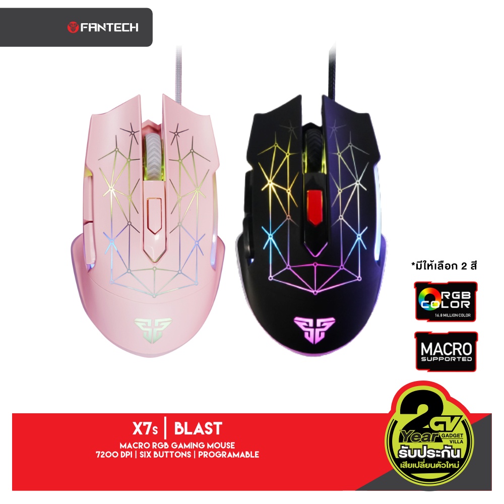 7. FANTECH X7s RGB Blast Optical Macro Key RGB Gaming Mouse เมาส์เกมมิ่ง ออฟติคอล ตั้งมาโครคีย์ได้ พร้อม feet mouse
