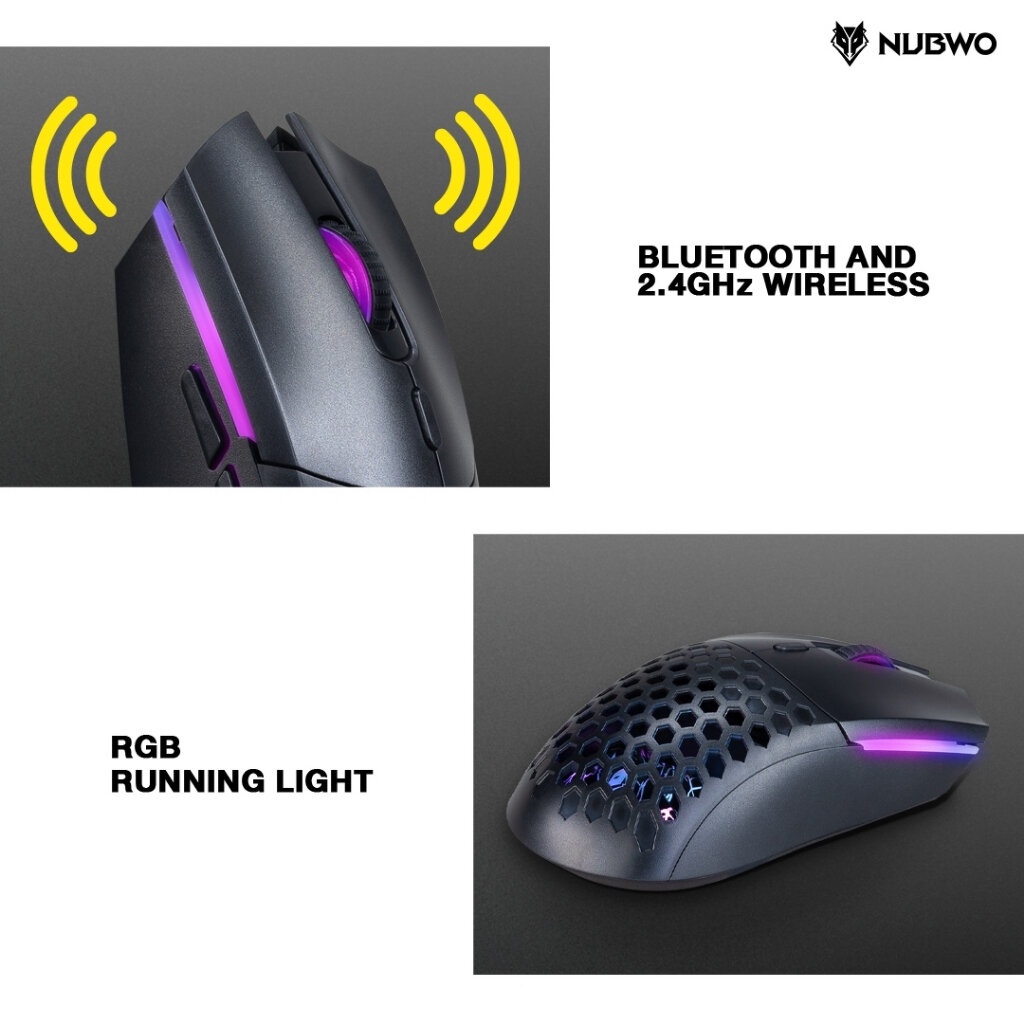 1. Nubwo เมาส์เกมมิ่งไวร์เลสได้ บลูทูธได้ มีไฟ RGB ปรับ DPI ได้ เปลี่ยนหน้ากากเมาส์ได้ รุ่น NM98 รับประกัน 1 ปี