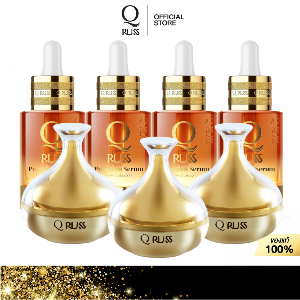 4. Q russ set Q7-03 ลดฝ้า กระ จุดด่างดำ ฟื้นฟูผลัดเซลล์ผิว ในเซตประกอบด้วย [เซรั่มคิวสูตรใหม่ 4,Mask 3]