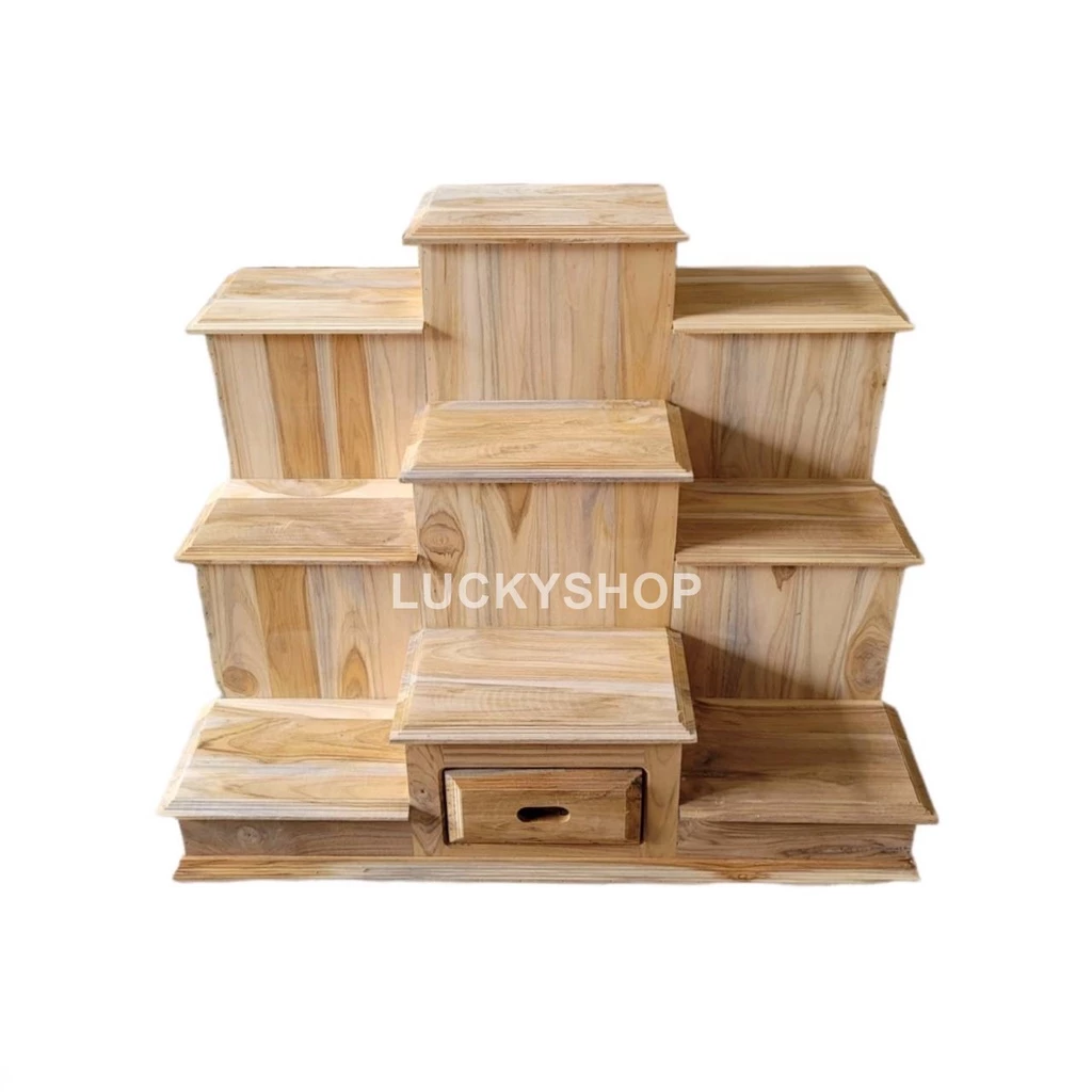 7. โต๊ะหมู่บูชา 9 ชั้นลูกทึบ มีลิ้นชัก งานไม้สัก