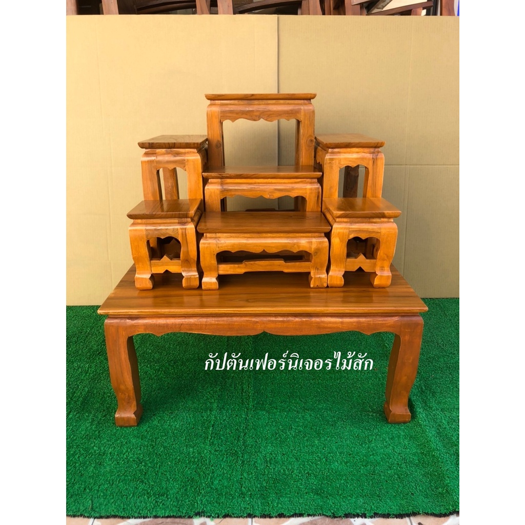 - โต๊ะหมู่บูชาไม้สักทอง สีย้อมไม้สัก