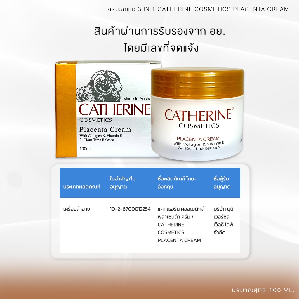 5. ครีมรกแกะ 3 IN 1 Catherine Cosmetics Placenta Cream นำเข้าจากประเทศออสเตรเลีย ขนาด 100 ml (ของแท้ 100%)