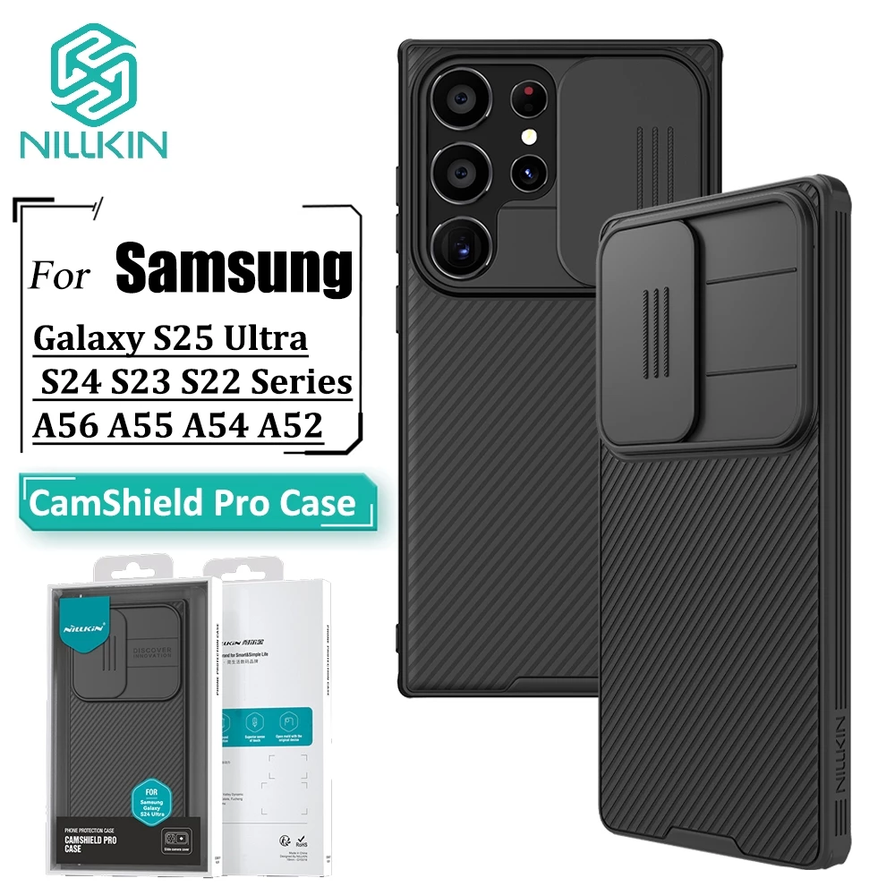 1. Nillkin เคสโทรศัพท์สําหรับ Samsung S25 Ultra S24 Ultra S23 Ultra S22 S24 FE A56 A55 A54 A52 A17 Note 20 Ultra Pushดึงเลนส์ป้องกันกรณี